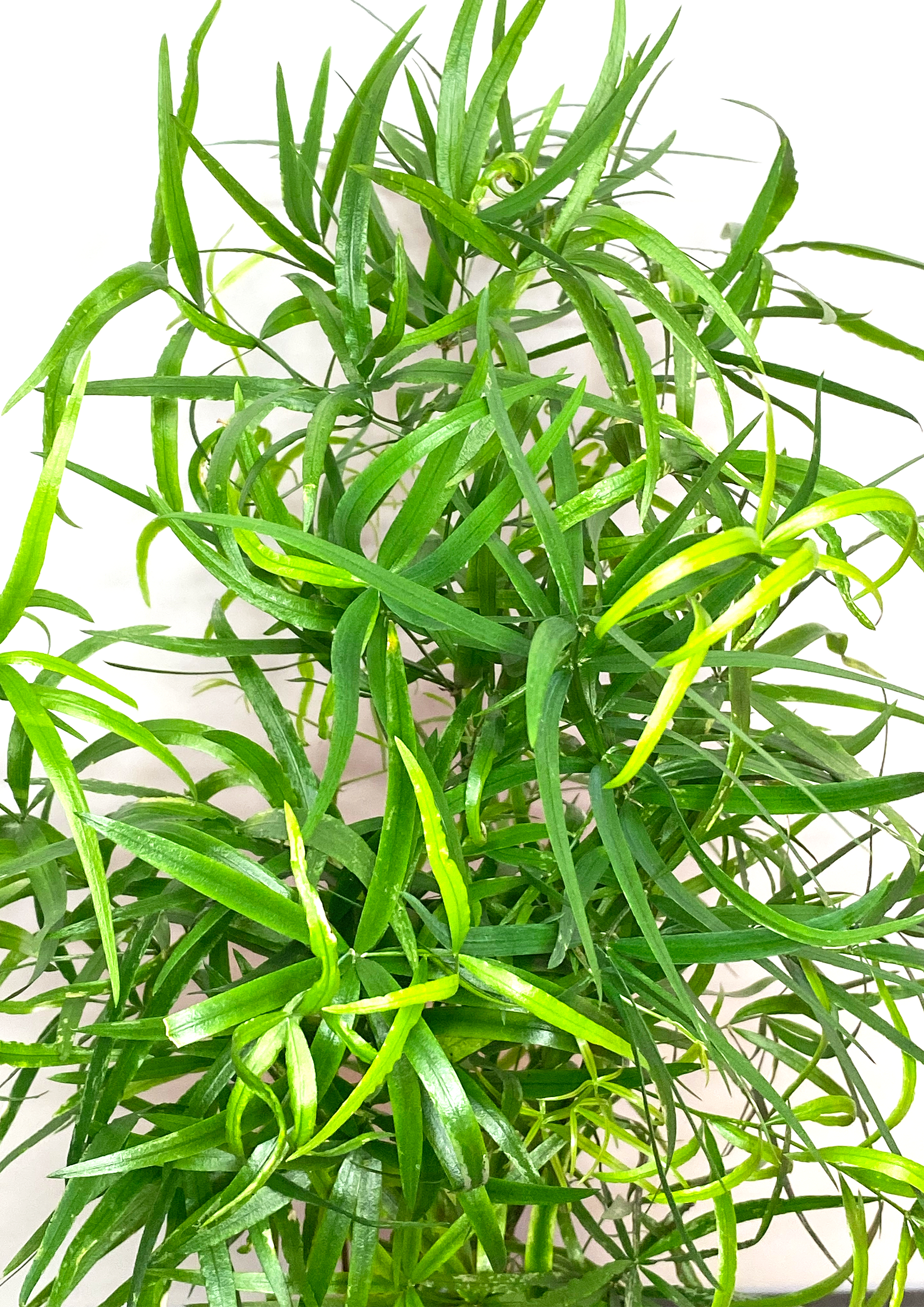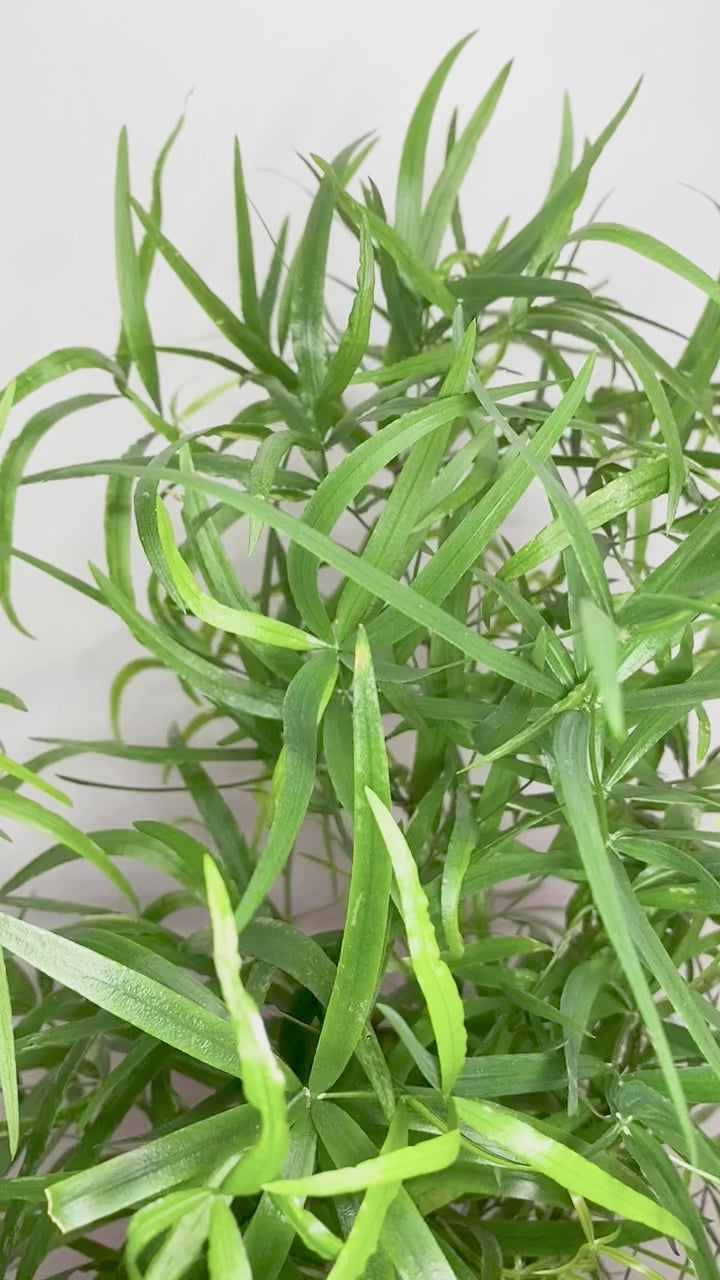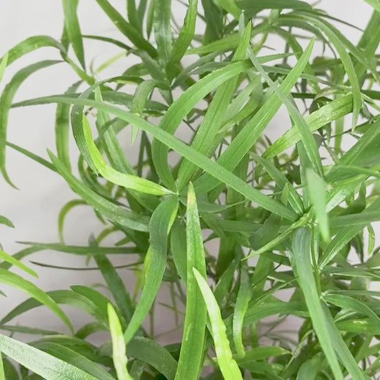 O Aspargus falcatus, conhecido popularmente como Aspargus Macarrão, é admirado por sua folhagem fina e delicada, que cria uma aparência volumosa e ao mesmo tempo arejada. Sua resistência a vento é uma das suas qualidades. Sua textura leve traz sensação de frescor e dinamismo ao ambiente, sendo ideal para quem aprecia plantas elegantes e de fácil cuidado.