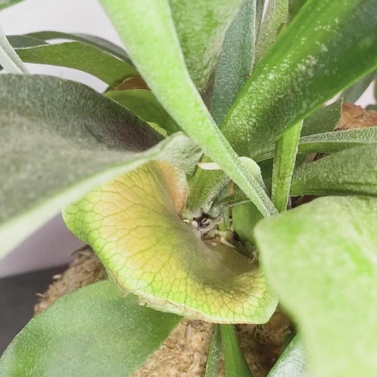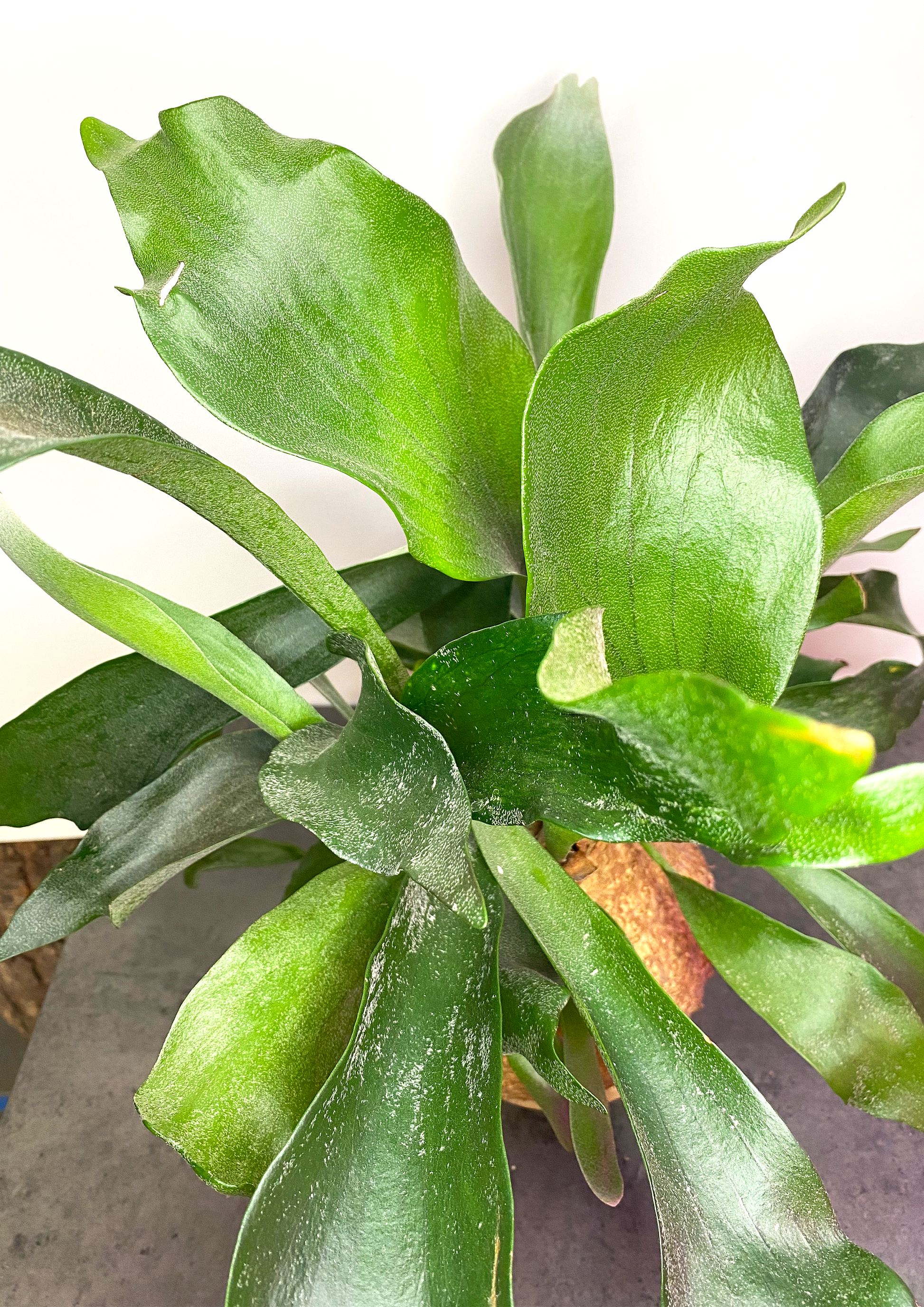 O Chifre-de-Veado aprecia alta luminosidade indireta e ambientes úmidos, sendo perfeito para espaços arejados mas sem vento direto.